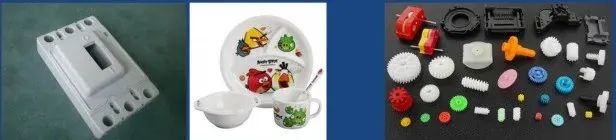 其中熱固性塑料為化學分子結構,一般是一次成型。如上左圖中開關面板和幼兒用的碗都是熱固性塑料加工而成的,它們具有耐高溫的特性,質地堅硬、難以熔化,加熱后也不再軟化,過度加熱直接分解。